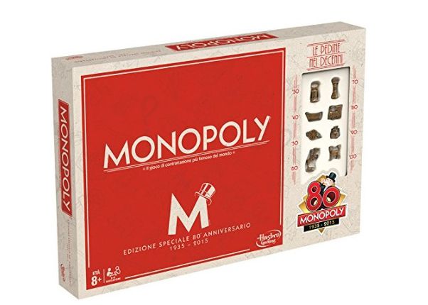 Celebra alla grande l'80° compleanno di Monopoly! Questa edizione speciale viene proposta in una confezione in perfetto stile vintage che ripercorre la gloriosa storia e l'eredità culturale del gioco di contrattazione più famoso del mondo, proponendo un tabellone in stile retrò, oltre che pedine, case e alberghi che sono autentiche reminiscenze delle primissime, storiche esperienze di gioco. Le 8 pedine sono altrettante icone di ciascuna decade di Monopoly.