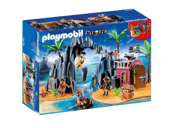 Con prigione, roccia cadente, grotta nascondiglio, cannone funzionante e barca a remi.